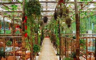 川谷,生態(tài)餐廳內(nèi)更是別具一格,郁郁蔥蔥的花木間,別致的散落著藤制的桌椅,使您在享受著美食、美景的同時(shí)還可享受到融入大自然的感覺。川谷餐廳可容納300人同時(shí)就餐。
