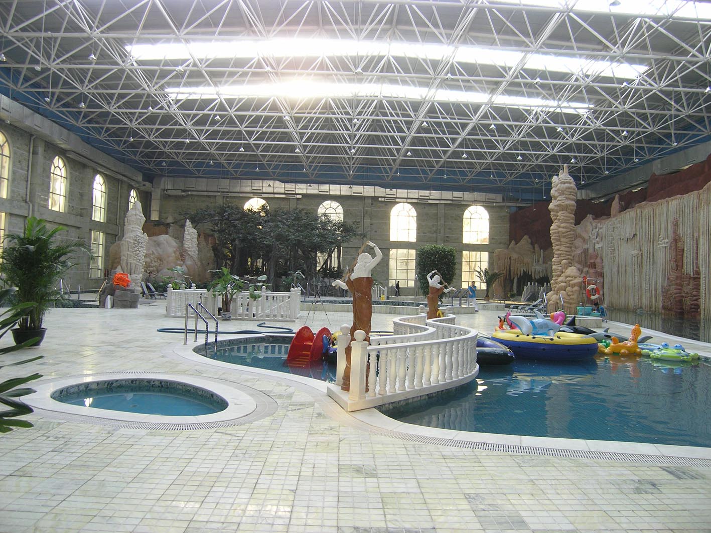 圣世苑溫泉娛樂(lè)中心"碧海瓊宮"水療養(yǎng)生館有光波浴、牛奶浴、藥浴、物理水療、溫泉游泳、漂流沖浪等。特別是用瑪瑙玉石精心雕琢的各式溫泉泡池、桑拿浴房和溫泉魚(yú)療,更使您得到貴族般的享受,留連忘返?刁w中心設(shè)備先進(jìn)、功能齊全,有室內(nèi)網(wǎng)球、羽毛球、沙壺球、臺(tái)球、乒乓球、保齡球、氣旋球等。豪華的KTV包間更是您一展歌喉的好地方!