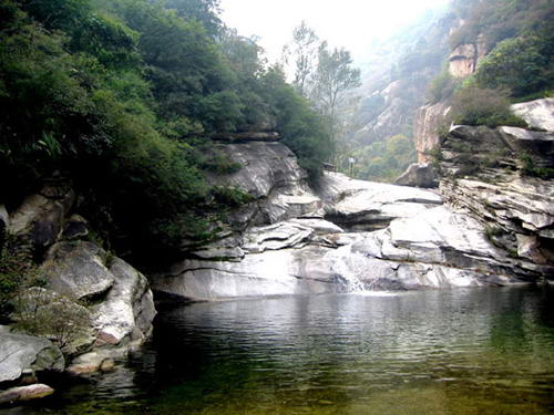 這條峽谷俗稱轱轆峪,窈窕峽長(zhǎng)蜿蜒曲折,峪谷兩壁陡峭奇聳,峰巒疊嶂。三瀑十八潭貫穿其中,人們對(duì)黑龍?zhí)兜脑u(píng)價(jià)是新、奇、險(xiǎn)。在八里長(zhǎng)的深谷里,瀑布如此之多,在京郊無與倫比。從頭到尾,處處新穎,決無重復(fù)之感,一進(jìn)潭頭,就把游人引入 到瓊山閑境,使人心礦神怡,欣然前往。 通天瀑垂直陡峭,壁如刀削,五十多米高的瀑布仿佛從天而降,煙靄升騰,彌漫山谷,冷氣撲面。落雁潭是通天瀑?zèng)_擊而成,潭闊水深,水面一百多平方米,水深處三——四米。此外地勢(shì)較為開闊,山峰環(huán)抱,山清水秀,河灘卵石縱橫,山花野草茂盛。每當(dāng)初春或冬近時(shí),大雁到此棲身落腳,喝水 食,故有“落雁潭”之稱。 峽谷幽深,所有自然景物都自稱奇趣。大自然的鬼斧神工,把這條峽谷雕鑿得景中有奇,奇中有景,出人意外,神秘莫測(cè)。 瀑布龍?zhí)都刃蹅延^,又揣急驚險(xiǎn),瀑布轟鳴,潭水急旋,峰崖陡峭,谷深路窄。登梯走橋時(shí)可從險(xiǎn)中觀景,游人追求險(xiǎn)中景,甘愿“鋌而走險(xiǎn)”身臨險(xiǎn)境,領(lǐng)略險(xiǎn)中景的妙趣,險(xiǎn)中景給游人增添了力量,大有不到真潭非好漢的感受。 黑龍?zhí)叮两襁流傳著一個(gè)動(dòng)人的傳說:古時(shí)候,有兩條龍,長(zhǎng)大分家時(shí),性格憨厚的黑龍主動(dòng)把白龍?zhí)蹲尳o弟弟白龍,自己?jiǎn)紊硪蝗藖淼搅斯艠怯D菚r(shí)候,這里沒有一滴水,沒有一棵草,黑龍變成了小伙子,沒白天沒黑夜地拼命干,大西山的云蒙老祖看著黑龍又憨厚又勤快,就送給他一條彩帶和十八條珍珠,黑龍把珍珠灑在了古樓峪內(nèi),因此形成了現(xiàn)在的十八個(gè)奇潭。 |