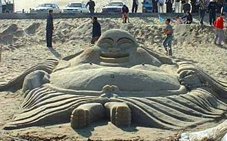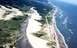 昌黎黃金海岸有52公里長的海岸線,距著名的避暑勝地北戴河僅15公里,但與北戴河不同的是,這里幾乎無石可言,卻有著只有在戈壁灘和黃海故道才能領(lǐng)略的沙漠風光。沿著海岸連綿起伏的一道道新月形沙丘,蜿蜒成一條長達上百里的“金龍”,處處金光閃閃,令人賞心悅目。緊傍這“金龍”的是由近8萬畝防風固沙的林木組成的林帶,黃綠交織,把蔚藍的大海映襯得撲朔迷離,金碧輝煌。 |